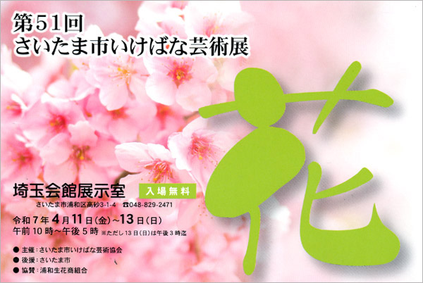 | 4/11 - 4/13 | 「第51回・さいたま市いけばな芸術展」 埼玉会館・地下展示場 / 浦和 | |