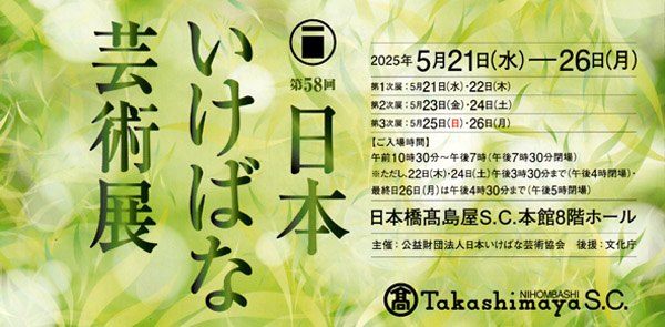 | 5/21 - 5/26 | 「第58回・日本いけばな芸術展」 日本橋高島屋S.C.本館8階ホール / 日本橋 | |