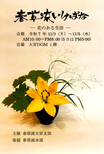 | 11/3 - 11/5 | 「春草流いけばな ― 花のある生活 ― 」 大宮DOM 1階 / 大宮 | |