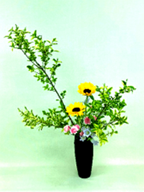 | 小品花形とは、花材の持つ色彩・形態・質感を的確にとらえようとする 較的少ない花材で構成した小品のいけばなです。シンプルな構成美・ 色彩的な美しさを生かして初心者の方々の自由な感覚を育てていきます。 |